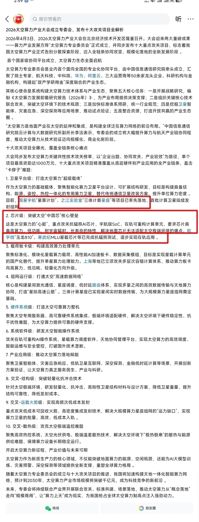 。场景落地:为"三体计算星座""星算计划"提供算力芯片。
