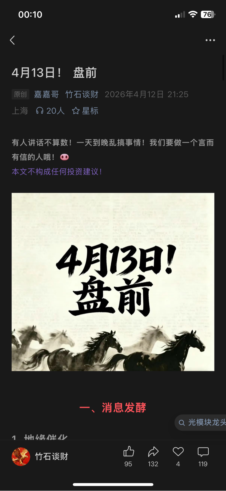 • 地缘反复→A股涨1天跌1天;高开易兑现A杀,低
