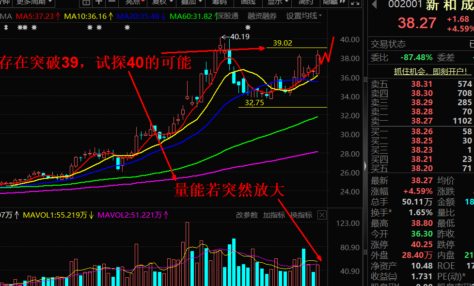 维生素蛋氨酸+高端新材料+生物制造题材高度融合的稀缺龙头。中东冲突致海外巨头(赢创、住友)产能不可抗力停产,全球供给紧张,公司成本较行业低 1500元/吨,毛利率超 60%。周二盘面或存在消化昨日涨幅,盘中可能出现冲高回落、再回踩、再小幅拉起的震荡结构。也不排除全天在窄幅区间内波动,以缩量整固为主,若放量突破39元,则存在继续走强、冲击40元的可能。