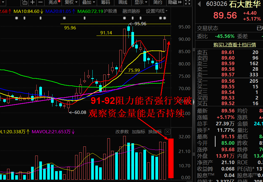 全球电解液溶剂龙头,新建锂电项目能效达标杆水平,淘汰落后产能,利好头部企业。储能爆发:“十五五” 规划4 万亿电网投资,2026 年全球储能电池出货增速超 100%,电解液需求激增。周二盘面存在部分短线资金获利兑现的可能,但新资金或继续接力,整体看大幅下跌可能性很低,可能存在高开→冲高遇90–92元压力→震荡回落蓄势。