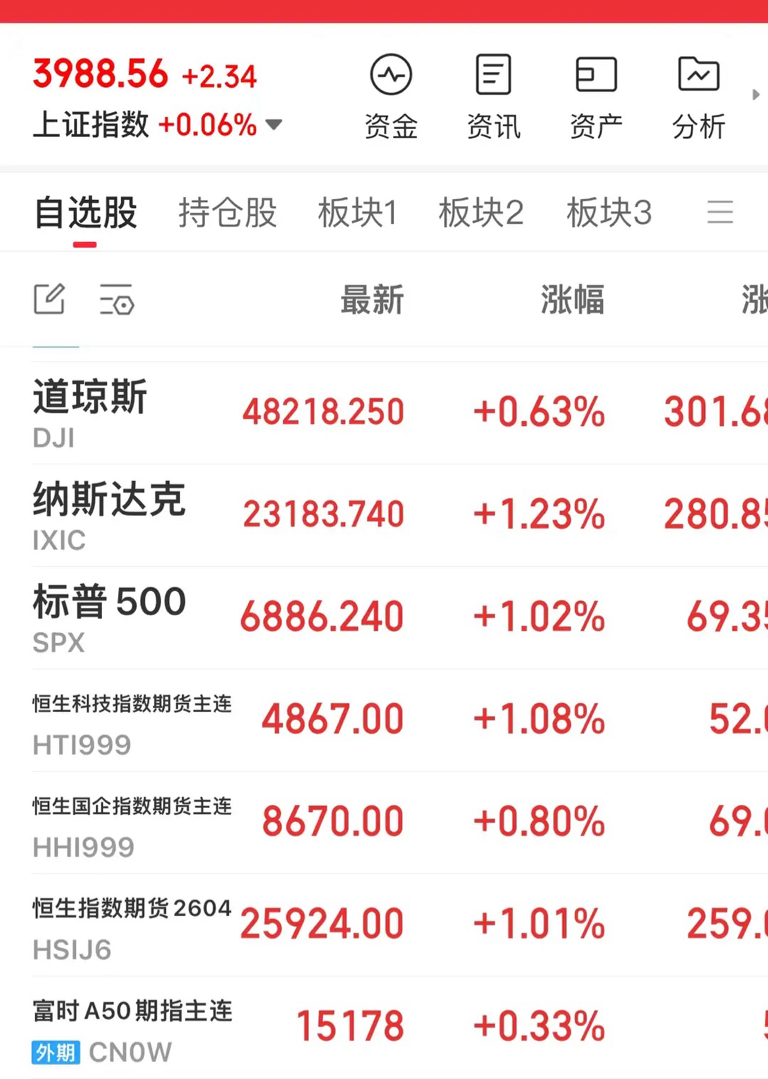 放眼今日A股,外围市场全线飘红,昨夜美股、中概股、港股期货及富时A50期指集体上涨,多重利好加持下,A股大概率迎来高开。