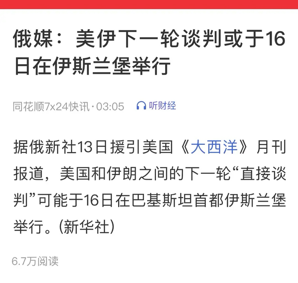 外媒爆料双方下次直接谈判或于16日在巴基斯坦举行,持续的接触让市场看到和平解决的希望。