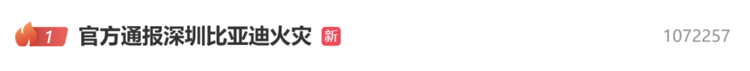 随后,“官方通报深圳比亚迪火灾”的词条亦登上微博热搜榜首位。