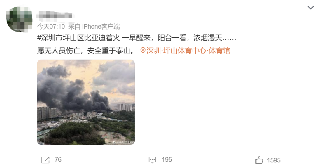 【导读】网传比亚迪坪山园区出现火灾,官方通报:火势已扑灭,无人员伤亡