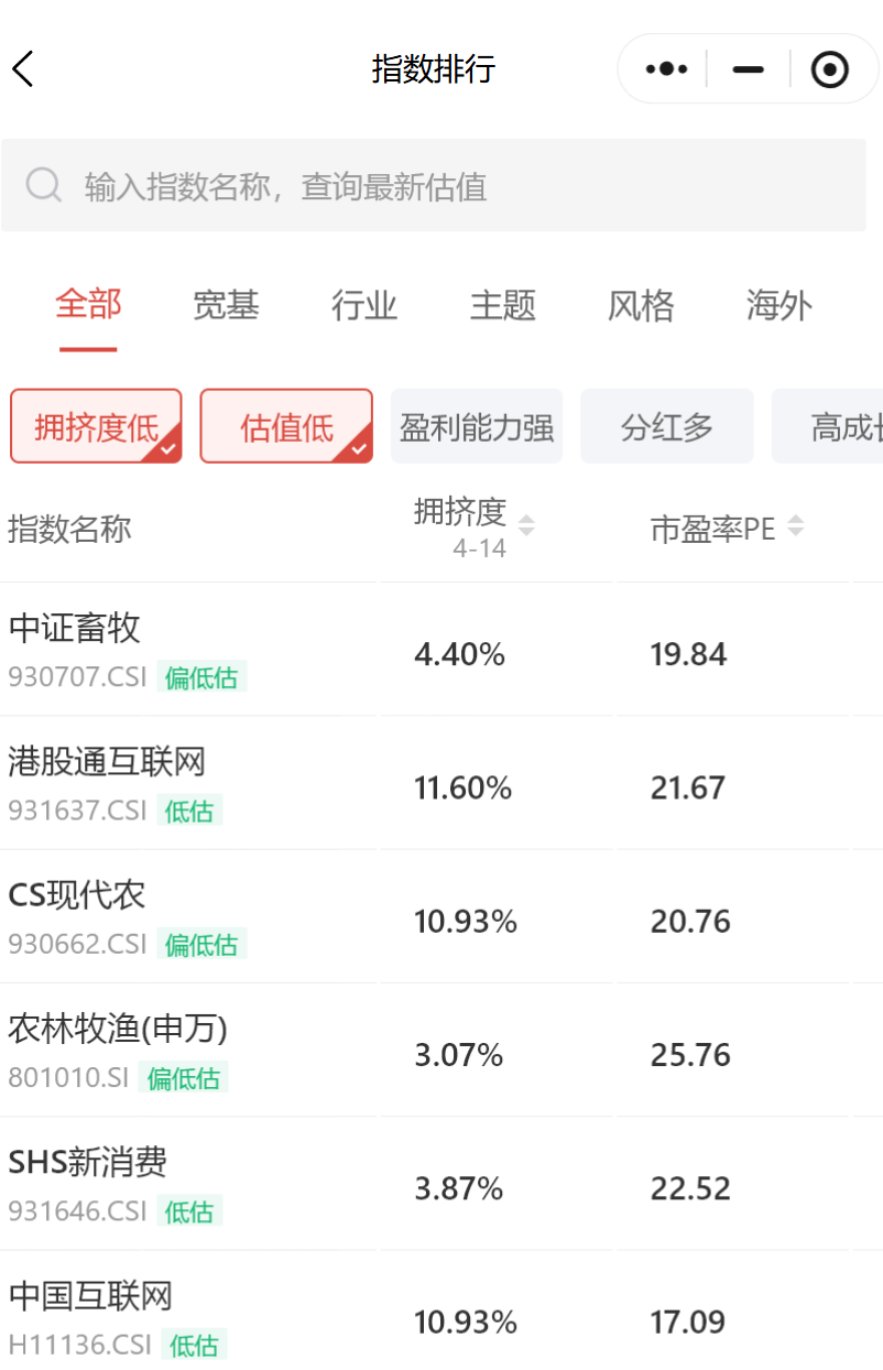 近期板块轮动加快,之前也是多次提醒关注低估值+低拥挤板块布局机会,大家可以关注指数大师小程序-指数排行。