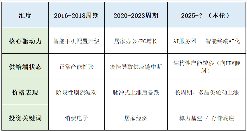 复盘历史,芯片行业的每一次脉动都伴随着硬件终端的更迭。但正如本轮涨价周期与2016年的智能手机升级、2020年的PC补库有着本质的不同。
