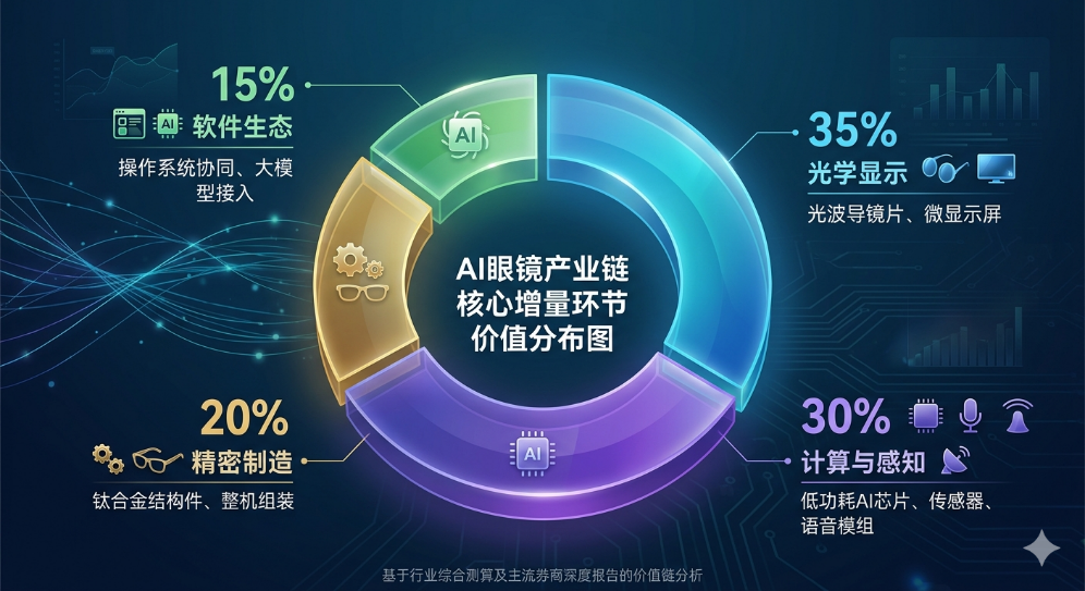 根据行业综合测算及主流券商深度报告的价值链分析,AI 眼镜的核心价值增量主要分布在以下四个环节: