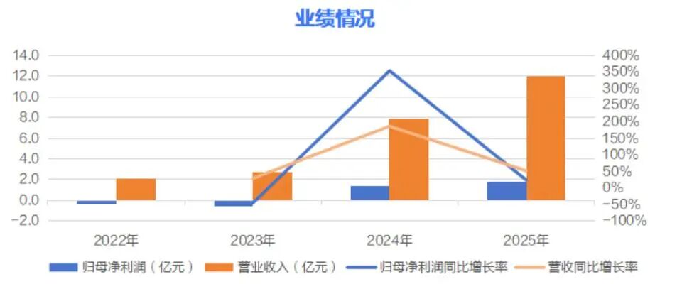 营收高增:2022-2024 年营收从2.14 亿→7.89 亿,复合增速91.79%;2025 年全年11.94 亿,同比 +51.41%。