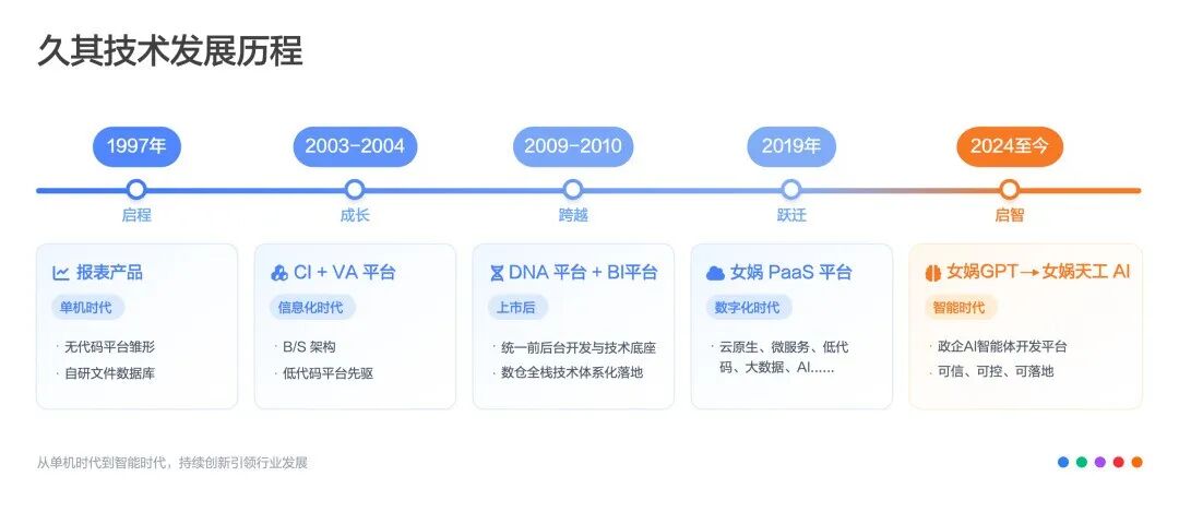 每一次架构升级,每一次平台换代,背后都是久其技术人对完美的偏执、对易用实用的坚守,更是对“软件报国”使命的践行。