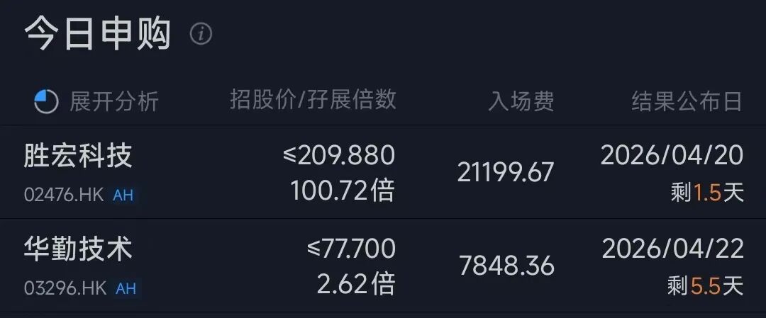 胜宏科技明天早上截止认购,现在申购资金已经全部释放,孖展倍数肯定会快速增长。A股今天胜宏科技大跌,现在港股胜宏科技的折价率大概还剩37%,希望A股这边能稳住几天。
