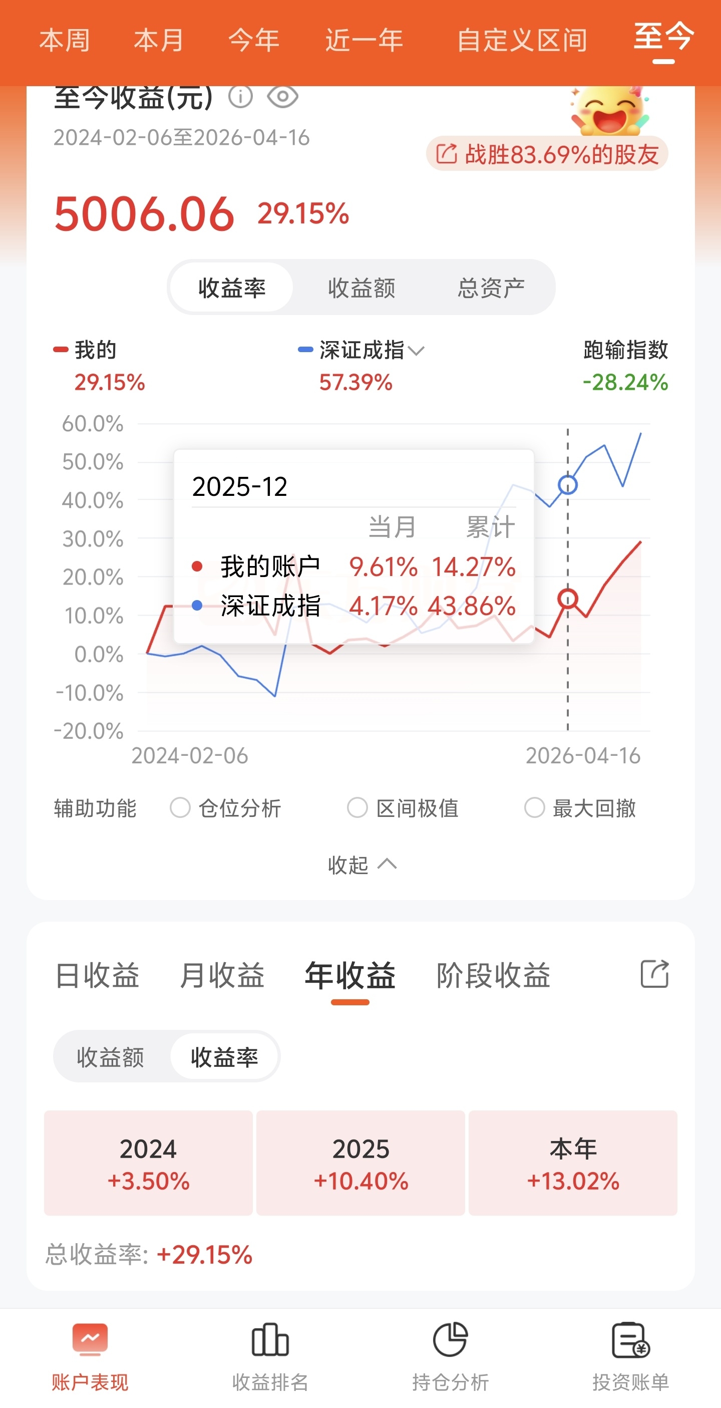 这个月目前只盈利了4.25%,甚至跟不上大盘,感觉主要原因还是换股太频繁。