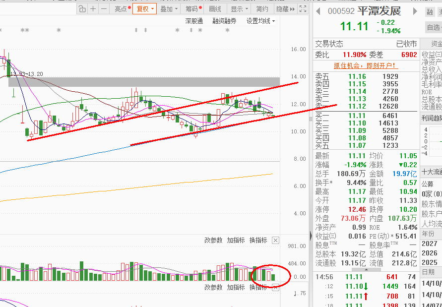平潭走势与海峡方向出现明显背离,我依旧看好后续增量资金带动的反弹机会!目前依托半年线保持中长期趋势,位置相对安全!昨天再度缩量测试半年线,能看出资金控盘迹象,暂时不愿跟随板块补涨!今天看能否放量反弹,开始进去区间上涨的预期,如果几天还是测试半年线,仍处于左侧整理阶段,暂时不盲目进场!