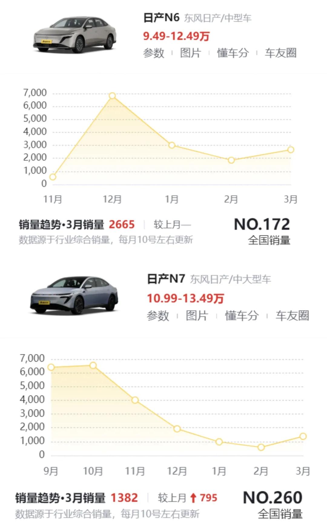 根据懂车帝的公开数据显示,2025年4月上市的N7,曾凭借11.99万至14.99万元的亲民定价,在当年8月一举突破万辆大关。但好景不长,到了今年3月,其销量已经断崖式下跌至仅1382辆。同年12月上市的N6同样未能幸免,从首月交付近7000辆,迅速滑落至今年3月的2665辆。