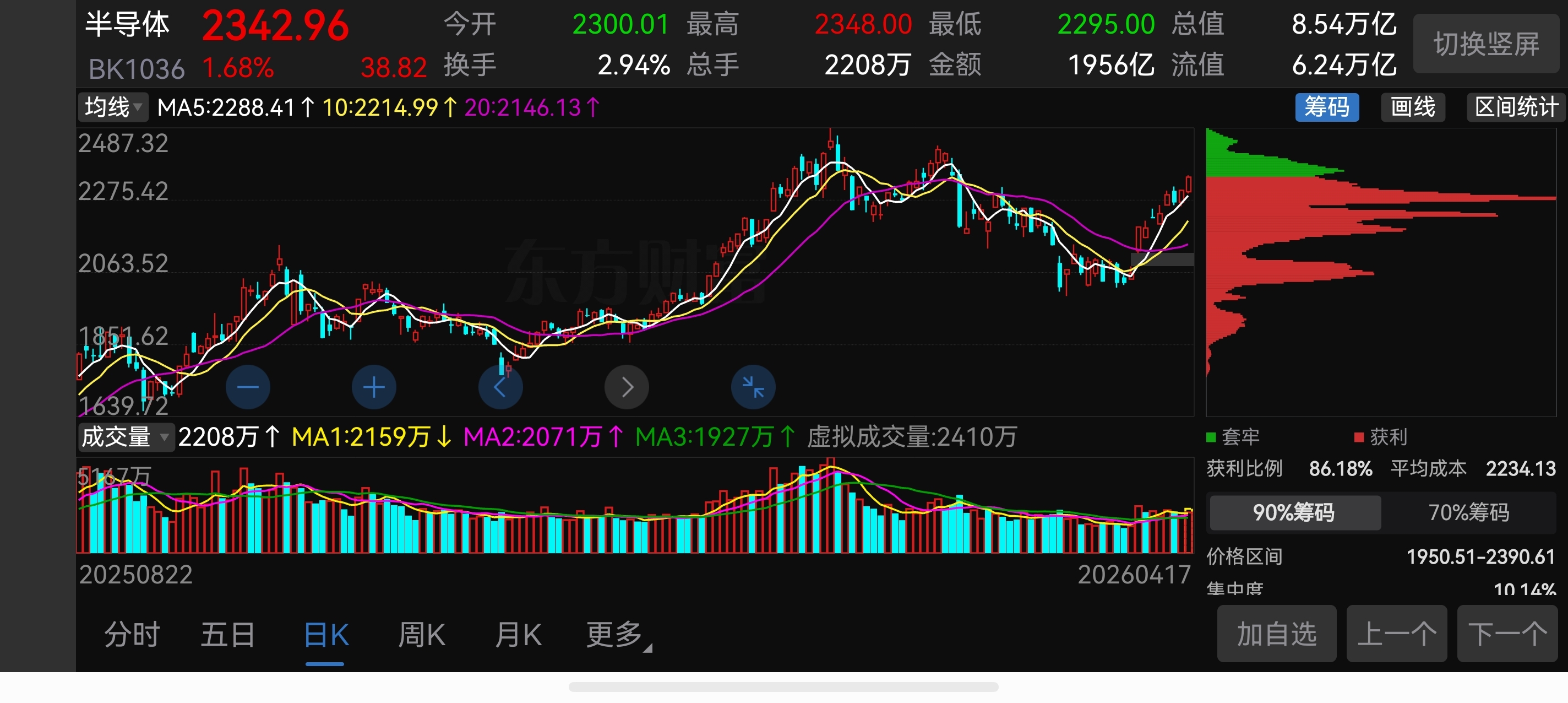 早盘科创半导体全线异动,AI算力芯片、存储、先进封装三大主线集体冲高,海光信息、寒武纪、兆易创新等核心标纷纷拉涨,主力资金半日疯狂涌入科技成长赛道,完全符合咱们之前预判的「AI算力+国产替代」双轮驱动主升逻辑!目前板块指数非常漂亮,沿着5日线多头运行,目前筹码结构也比较良好,并没有出现主力出货的痕迹,所以这一块还是可以思考的。