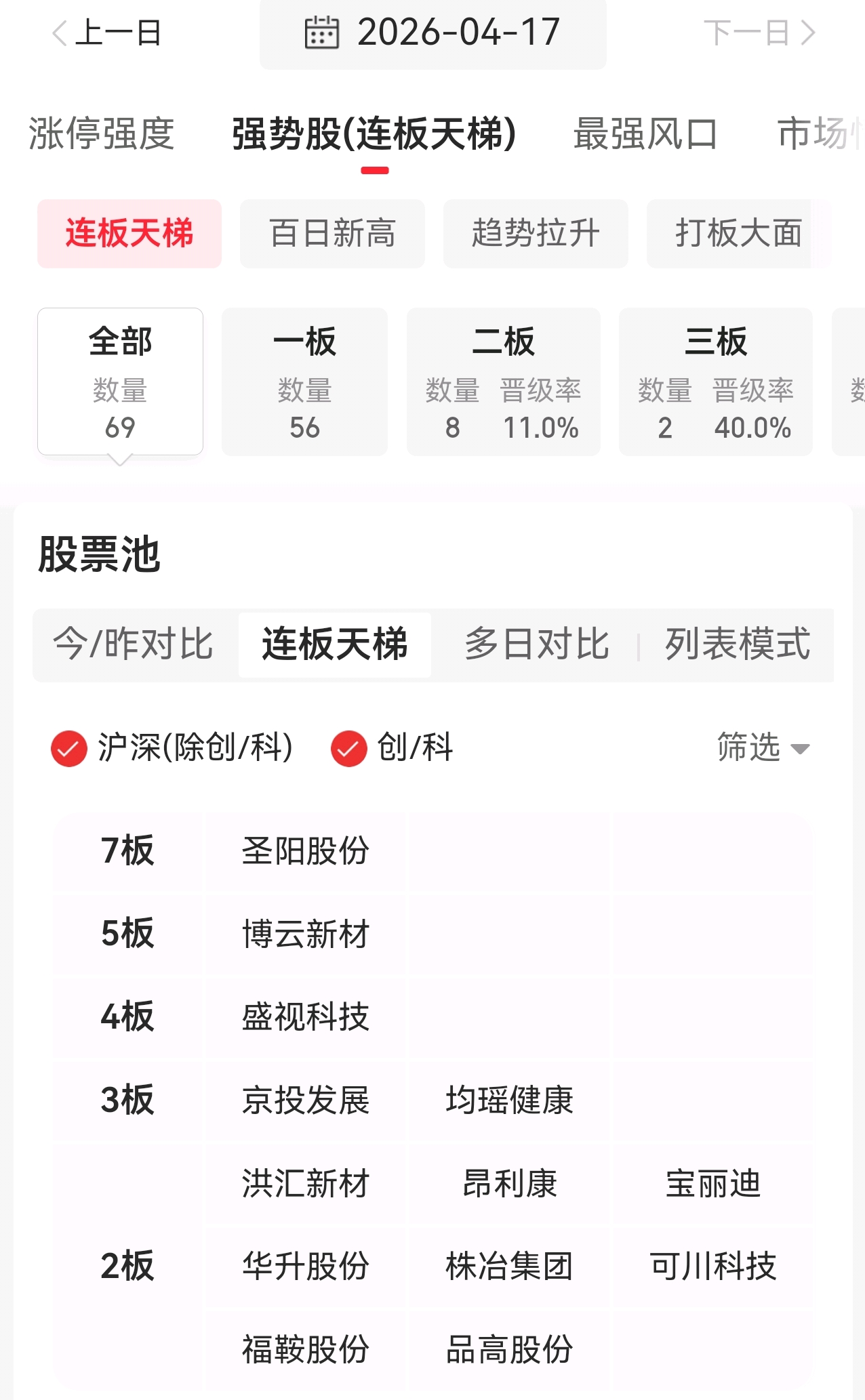 今天连板晋级率较高,主要是圣阳晋级7板带动短线情绪回暖。但是连板一致性较高,周一接力需警慎。