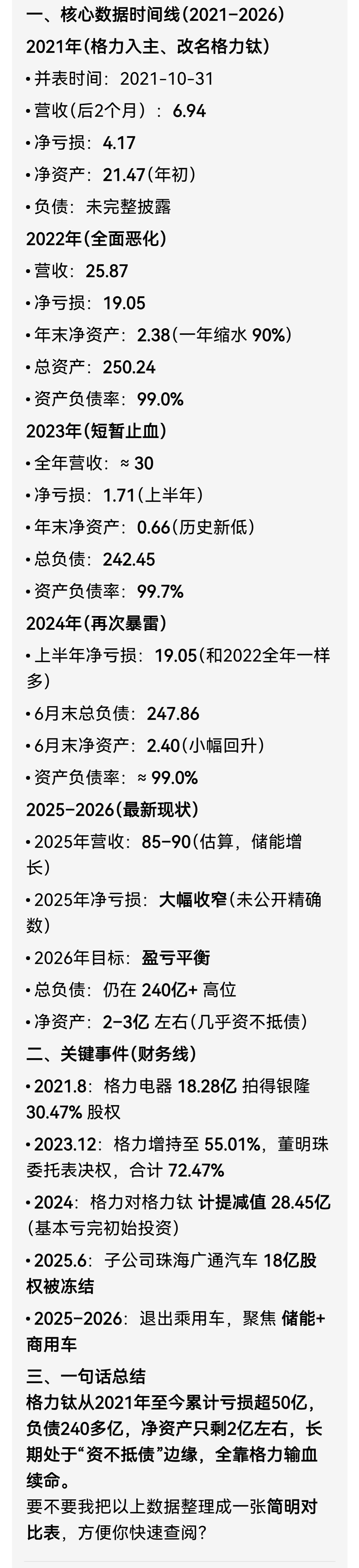 在格力接盘银隆前董明珠还求王健林和刘强东帮忙投资了十几亿已经全部亏光。格力钛储能在极寒情况下才有点用注定是小众市场。