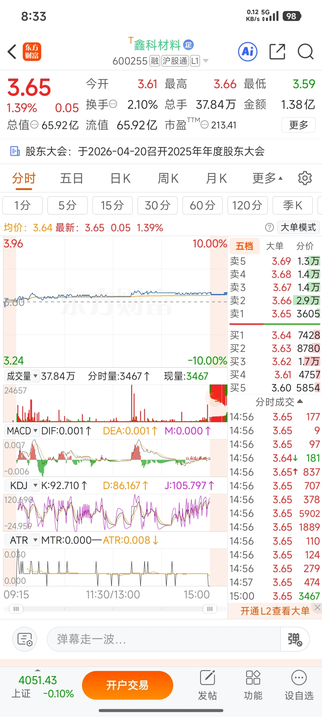 1. 分时表现:当天股价一直在3.61-3.66元窄幅震荡,没有被万手压单直接砸下去,也没有被托单拉起来,说明这些挂单大多是“挂而不发”,真实成交意愿不强,更像是主力在控制震荡区间。