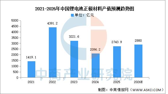 中商产业研究院发布的《2026-2031年中国正极材料行业前景与市场趋势洞察专题研究报告》显示,得益于正极材料出货量的大幅度增长,2025年,中国正极材料行业的总产值同比增长30.9%达到2743.9亿元,结束了连续两年同比下滑的趋势,但是相对于2022年的4391.2亿元的高点仍有较大差距。中商产业研究院分析师预测,到2026年,锂电池正极材料产值有望进一步增长至2880亿元。