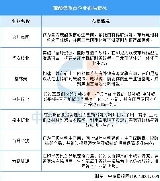 中国硫酸镍龙头企业正围绕“资源保障、成本控制、产业链延伸”三大核心展开全球化竞争。资源端,企业普遍将印尼红土镍矿作为战略要地,通过控股、合资、长协等方式锁定原料;生产端,依托湿法高压酸浸等先进技术,构建从矿山到硫酸镍的一体化产能,并向下游前驱体、正极材料延伸以提升附加值;战略上,部分企业采取“三元与磷系”双线布局以应对技术路线不确定性,同时通过电池回收构建循环供应链,旨在提升在全球新能源材料产业链中的主导地位与抗风险能力。