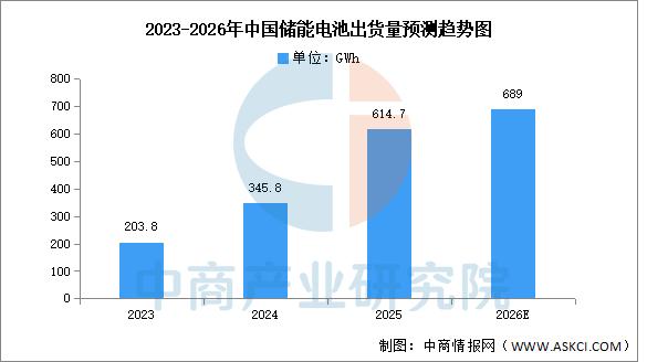 中商产业研究院发布的《2026-2031年全球与中国储能锂电池市场现状及未来发展趋势》显示,2025年中国企业储能电池出货量为614.7GWh,占全球储能电池出货量的94.4%,中国企业出货量全球占比进一步提升。中商产业研究院分析师预测,到2026年,中国储能电池出货量将达689GWh。