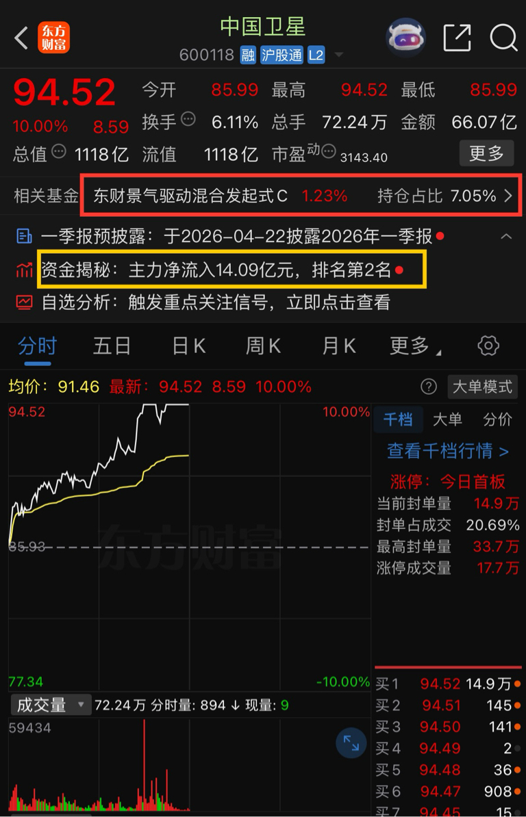 无论天银机电还是铂力特(受立案调查影响表现),当然还有$东财景气驱动混合发起式C(OTCFUND|019144)$ 这只重仓了$中国卫星(SH600118)$ 和$中国卫通(SH601698)$ 的卫星主题基金。