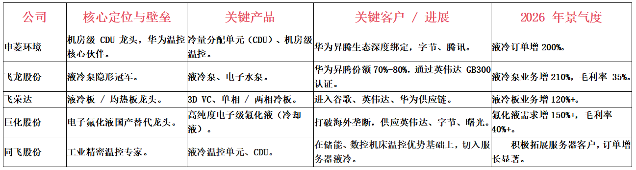 相关公司:申菱环境(华为昇腾生态 CDU 核心伙伴)、同飞股份(精密温控专家)。