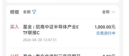 $招商中证半导体产业ETF联接C$今天加仓1000元。
