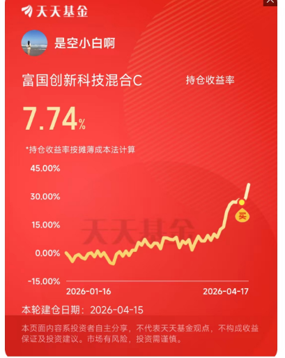 晒一下$富国创新科技混合C(OTCFUND|011120)$的收益。建仓到现在才2天,持仓收益率已经到7.74%了。光模块这波主升浪确实给力,中际旭创、新易盛这些持仓股轮番表现。算力需求还在放量,业绩也有支撑,拿住继续让利润跑。市场震荡的时候敢于上车,现在开始兑现了,舒服。