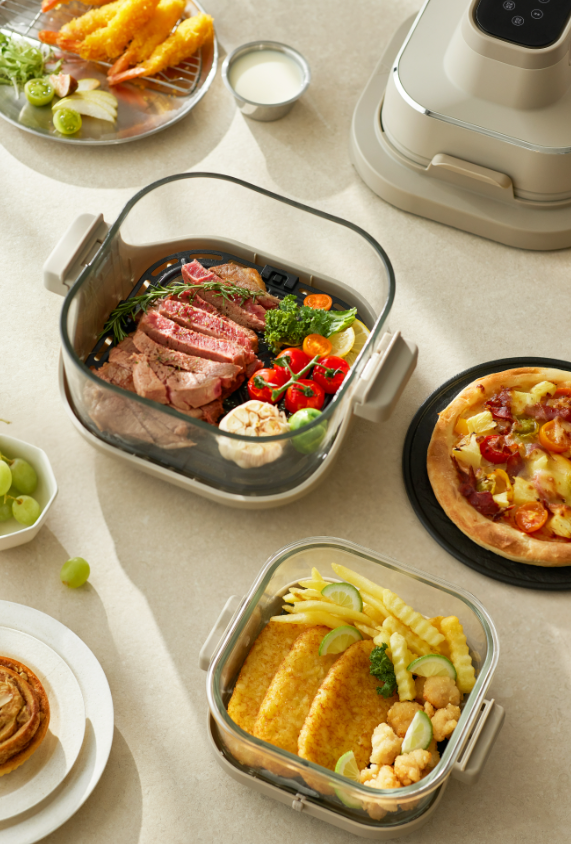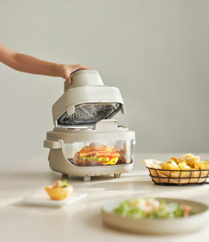 你的食物接触的每一寸都是食品级加厚高硼硅玻璃和陶瓷釉。这不仅让你在烤制鸡翅、红薯时能亲眼见证“上色”过程,避免炸糊产生致癌物(生熟不用靠盲猜),更彻底告别了金属析出和涂层脱落的心理负担。清洗时一抹即净,没有卫生死角。