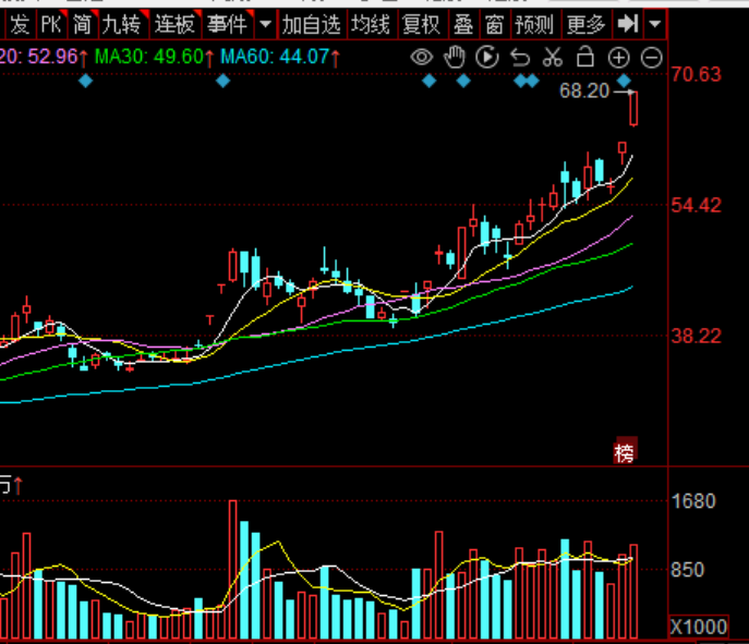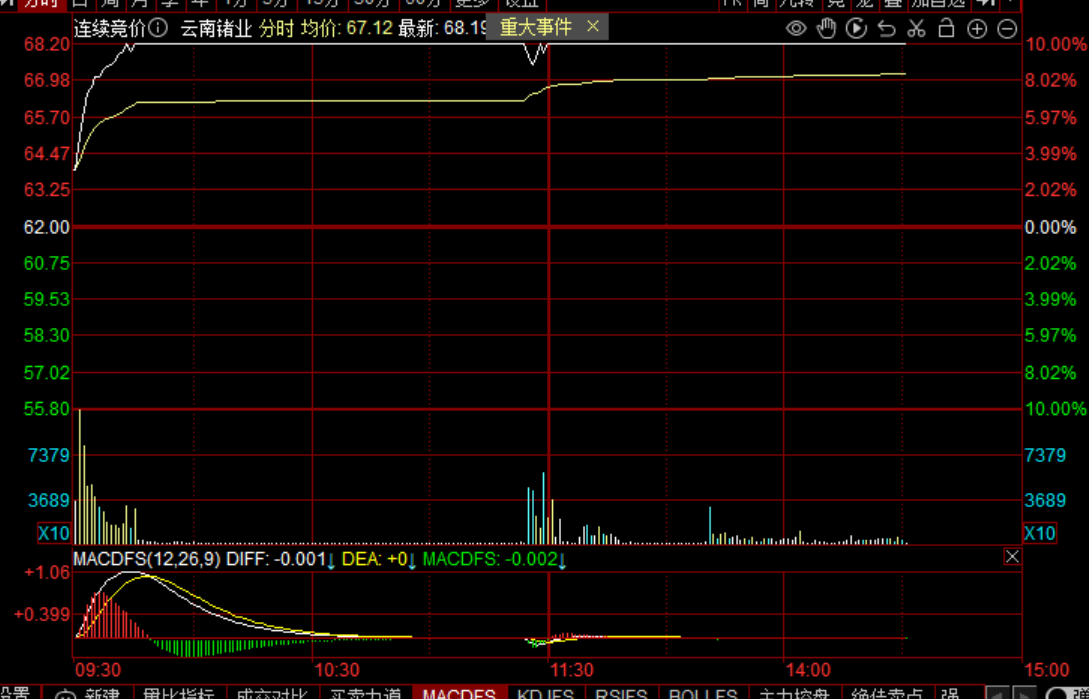 今天云南锗业高开直接一根线冲封板,临近午盘炸板,下午反复开了好几次。当日成交超过75亿,刚刚我们提到融资资金超过7亿,短线资金介入程度不低。