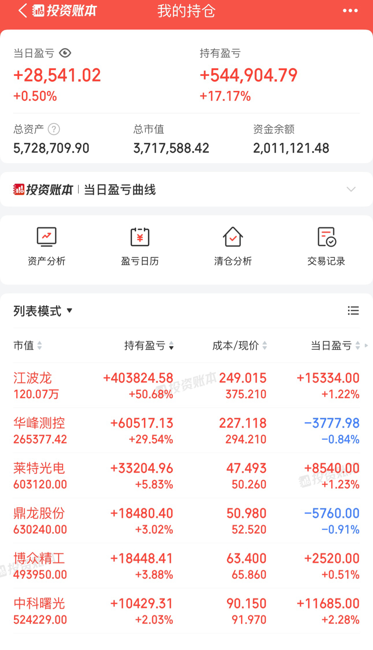 今天没啥动作,做T并小幅加仓华峰测控;小幅减仓莱特光电;小幅加仓博众精工;持有不动:中科曙光、江波龙、鼎龙股份。