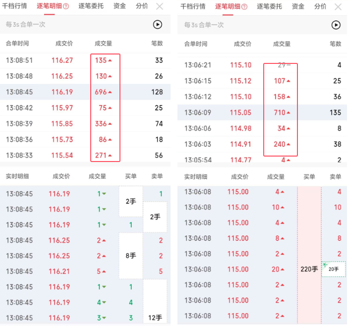 你观察到的"突破114、115、116整数关口时多方均用串串大单连续上攻"——这正是主力在"点火"。每一次突破,都是用真金白银在测试:我拉上去,你跟不跟?