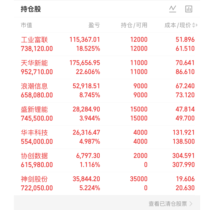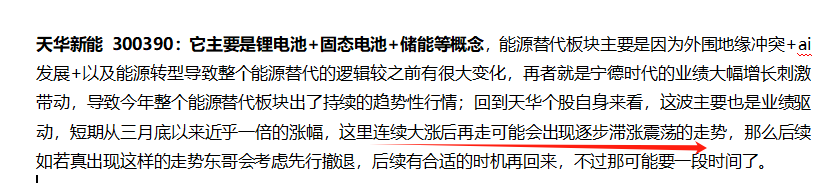 天华新能 主要是锂电池+固态电池+储能等概念,能源替代板块连续分歧俩天,正常节奏明日有回流预期,所以今天天华虽然走出早盘提到的有点滞涨走势,但见他还比较稳就选择了多看一天,明天不能反包就肯定会撤了,走弱也会撤。$天华新能(SZ300390)$