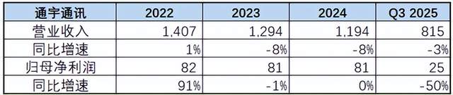 相比之下,通宇通讯不仅没有“富爸爸”,头上还有一堆“大老爷”。国内5G发展进入平缓期,公司自身的卫星天线也没有爆发,通宇通讯2025年前三季度营收仅8.15亿,同比持平略有降低。归母净利润2527万,同比降低50%。如果再把一些非经常性损益扣除,利润就剩下了可怜的160万,可谓是失血严重。