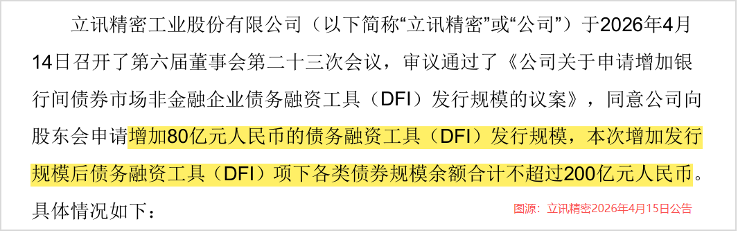 与此同时,立讯精密也正在开拓其他融资工具,用来替代向银行贷款。