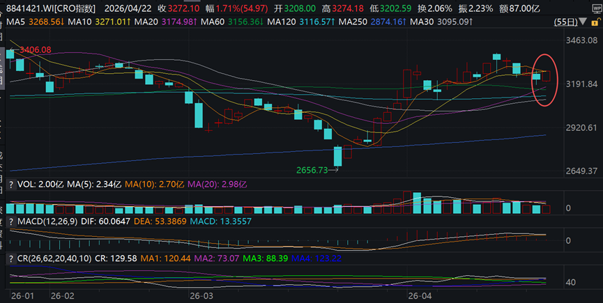 1.创新药:CRO今天低开高走,20日均线附近成功获得支撑,希望能有一波反弹行情。