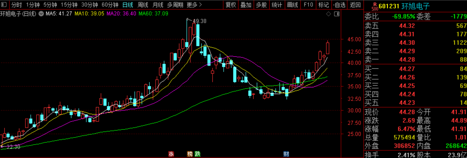 $环旭电子(SH601231)$目前延着均线向上在走趋势,可以继续拿着,短期还有空间。