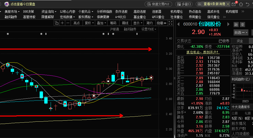 现在不是普通钢铁股,是稀土印钞机。股价还在低位,业绩爆得吓人,适合拿波段,别天天折腾。今天的话大概会继续震荡下去,但应该会偏强,今天的话继续做T,低吸高抛,高抛低吸。