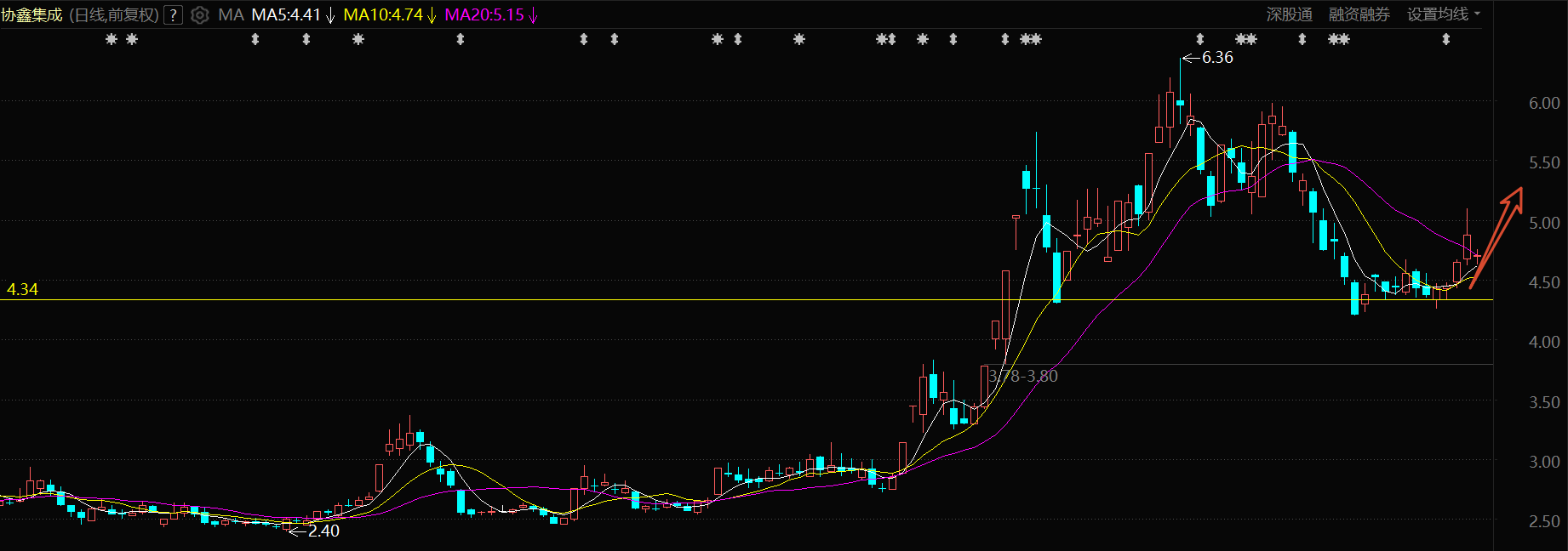 协鑫集成:周二协鑫的冲高其实是一个假的反转,真正的反转还在后面。从华电辽能的走势来对比,股价在触底止跌,形成U型反转之后,通常第一个反弹不会走得很远,而是小涨之后再进行二次洗筹,洗筹之后才会开启真正的主升浪。所以现在的协鑫集成是处于二次洗筹的过程中。从现在的量来看,昨天是缩量的,缩量能够走出十字星,多空均衡,说明抛压其实也不大,如果今天缩量还能稳住股价,那么后面两天多方就会进行回流,再次拉升股价,协鑫的真正阻力位是在前方的震荡中枢上,也就是差不多6块的地方,目前位置还是比较低,有性价比,如果回踩不破4.3这个支撑位,其实还是可以吸的。$协鑫集成(SZ002506)$