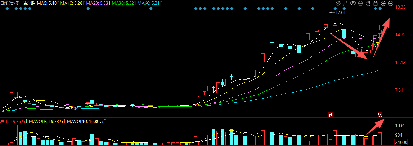 周三法尔胜走出了高开高走、宽幅震荡的强势盘面,早盘短暂探底获得强力支撑后便快速反弹,全天维持高活跃度运行,股价一举突破多条短期均线的压制,量能同步明显放大,连续多个交易日保持强势上行态势。即便盘中出现短期抛压,也被承接资金快速消化,整体的多头趋势延续性极强,也能明显看出市场资金对这只标的的参与热情十分高涨。公司是国内金属制品领域的老牌龙头,深耕行业数十年,在高端钢丝、缆索等核心产品上有着绝对的行业领先优势,手握多项行业卡脖子核心技术,同时旗下环保业务也是国家级专精特新小巨人企业,双业务协同发力,基本面支撑十分扎实。当前新质生产力概念持续发酵,金属制品板块受到资金的持续关注与加码,板块联动效应逐步显现,公司作为板块内的核心标的,资金关注度持续走高,高位换手充分,资金接力意愿充足。今天只要板块情绪能够持续发酵,个股在震荡消化完短期浮筹后,有望延续当前的强势态势继续向上运行。