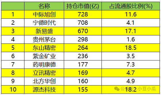 十大重仓股,一半跟“光”有关。中际旭创、新易盛、东山精密、源杰科技……机构持仓占比分别高达11.6%、17.1%、18.5%、18.2%。