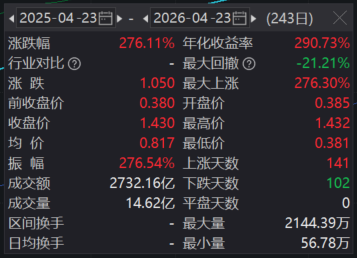 在AI叙事的助力下,截止4月23日写稿,通信ETF(515880)近一年涨幅超276%,居全市场ETF第一名!