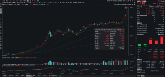2、规模与流动性俱佳:作为百亿级规模的行业ETF,其流动性充足,便于大资金进出,是市场公认的算力硬件投资标杆产品。