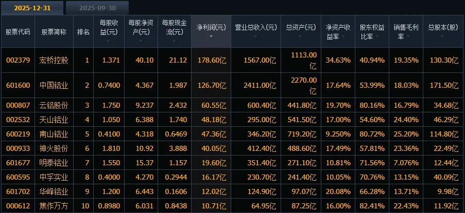 根据已经披露的2025年报,金属铝行业平均市盈率约10-15倍,而明泰铝业基于2026年预测净利润的预测静态PE仅8.7倍,在铝板块中处于明显低位。