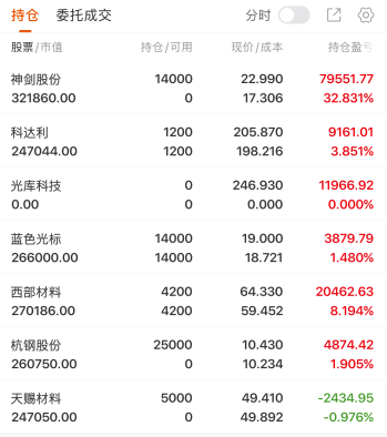 神剑股份:这个票今天的龙虎榜数据显示,深股通席位继续做T,小幅净买入。华泰证券苏州吴中大道营业部净买入1.29亿,这个席位于3月26日买入该股2000多万,3月27日买入6000多万,4月15日买入该股9000多万,但都没有看到这个席位出现在卖出方,不知道是卖出了没上榜还是买了后一直锁舱,不过该席位还买入了巨力索具、顺灏股份等商业航天概念股,应该是看好商业航天板块近期的行情,买入锁舱的概率较大。不过买了这么多货如果卖出那这个票将面临非常大的抛压,届时也可能是商业航天这一波行情的尾声了。不过就目前而言还是守好5天线就行了,不跌破就先拿着。$神剑股份(SZ002361)$