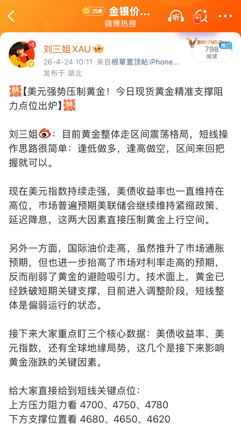 接下来大家重点盯三个核心数据:美债收益率、美元指数,还有全球地缘局势,这几个是接下来影响黄金涨跌的关键因素。