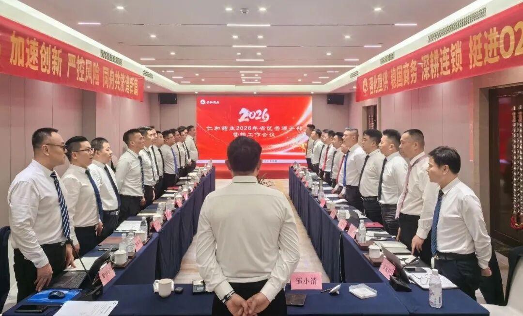 一季度公司业绩稳步提升:“2026,仁和必胜”!一季度营销工作总结会圆满召开:仁和药业销售公司总经理邹总认真听取各项汇报与发言,对一季度营销工作给予充分肯定,指出,一季度公司整体业绩稳步提升,部分省区表现优异,创新业务取得初步成效,为全年发展奠定良好基础!
