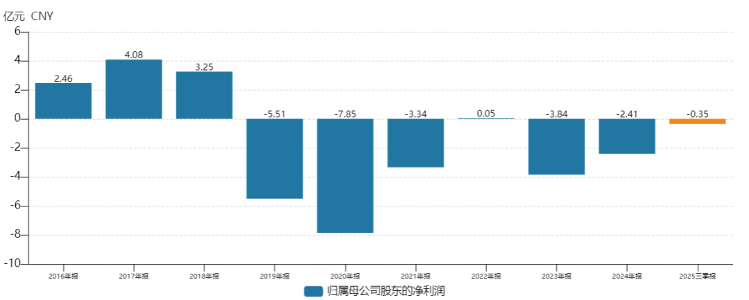 另据公司发布的2025年度业绩预告显示,其预计2025年继续亏损,全年归属于上市公司股东的净亏损为2亿元,较2024年净亏损2.41亿元减亏17.05%;扣除非经常性损益后的净亏损为4亿元,较上年同期净亏损2.2亿元,增亏81.51%。据公司介绍,2025年业绩亏损主要来源于计提减值损失和业务转型投入期亏损。