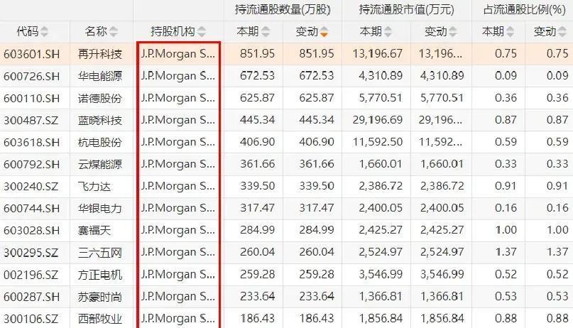 摩根大通这次也有代表性动作,再升科技被重仓新进851万股,持仓市值1.32亿元,蓝晓科技持仓达到2.92亿元,还涉及华电能源、诺德股份、杭电股份等,这类配置很像典型的“多主题分仓”,空气过滤材料、吸附分离、铜箔、电力,表面分散,底层逻辑却一致,都是在赌产业链里那些还没被挤到最贵的位置的环节,这不是追热点,是挑赔率。