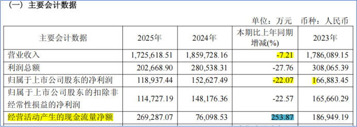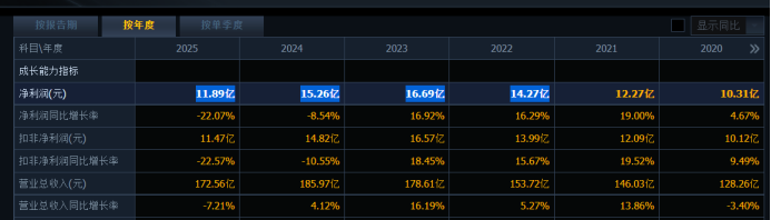 2025年公司的净利润11.89亿元。回到了自己2020年的位置。